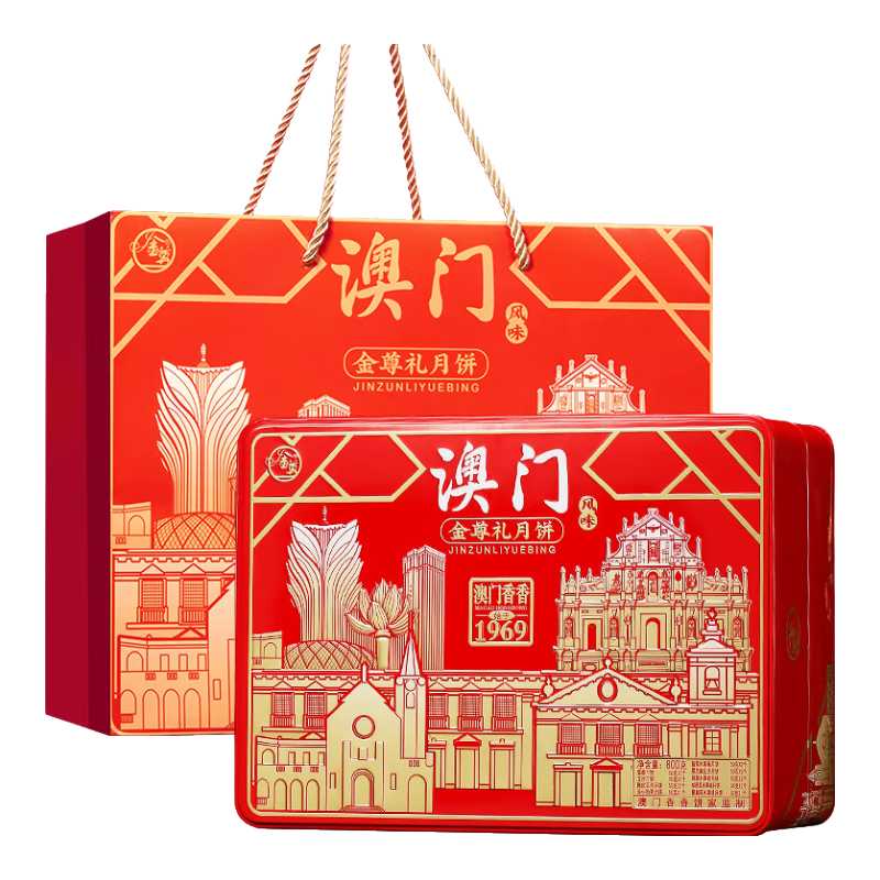 金尊礼月饼红色礼盒铁盒9味16饼800g中秋节送礼企业团购员工福利